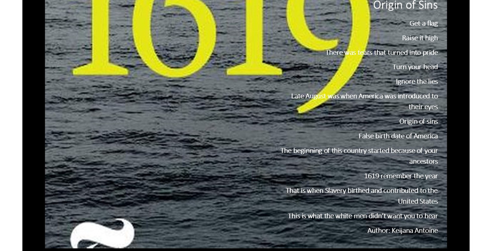 "The following poems are honest, artistic responses to our initial readings of sections of the 1619 Project published by the New York Times. To many of us, this was an eye-opening piece of journalism, and as artists, we channeled our emotions into our art. The result is a diverse selection of poetry and writing, which we would like to share with you today." ~Ms. Beuth, Theater Educator
